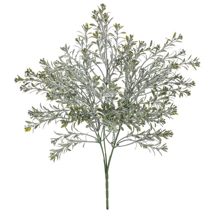 Umělý trs borůvčí v tmavě šedozelených odstínech přináší do interiéru přírodní atmosféru bez nutnosti údržby. Plastové listy a větvičky věrně napodobují strukturu a tvar skutečné rostliny, což zajišťuje přirozený vzhled. Díky kompaktnímu provedení je vhodný pro aranžmá v květináčích, dekorativních nádobách nebo jako součást větších dekorací. Trs je lehký a snadno se kombinuje s dalšími dekorativními prvky pro vytvoření zeleného akcentu v prostoru.
