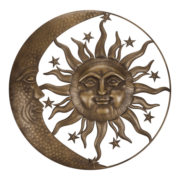 Kovová nástěnná dekorace představuje slunce a měsíc v měděném odstínu, který dodává teplý a přirozený vizuální efekt. Jemně tvarované detaily slunečních paprsků a měsíčního obličeje vytvářejí zajímavý kontrast a působivý designový prvek. Dekorace je vybavena praktickým otvorem pro snadné zavěšení na zeď, což umožňuje její snadné umístění v interiéru. Je vhodná pro oživení stěn v obývacích pokojích, chodbách nebo na terasách s krytým prostorem.