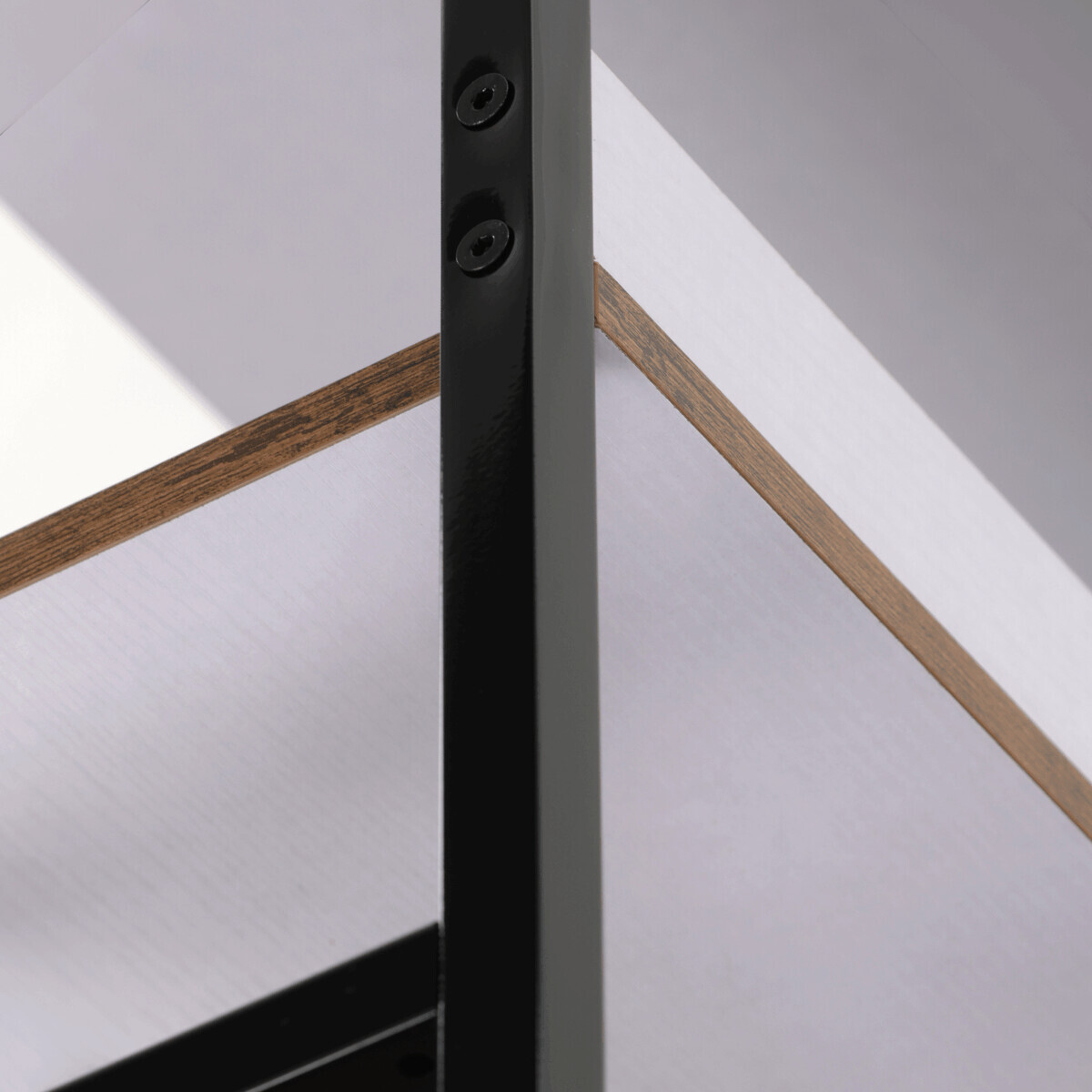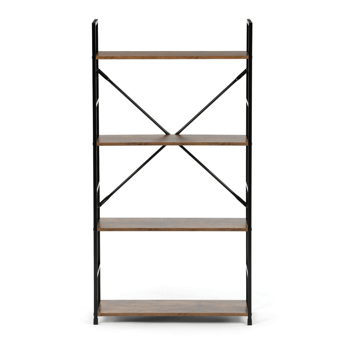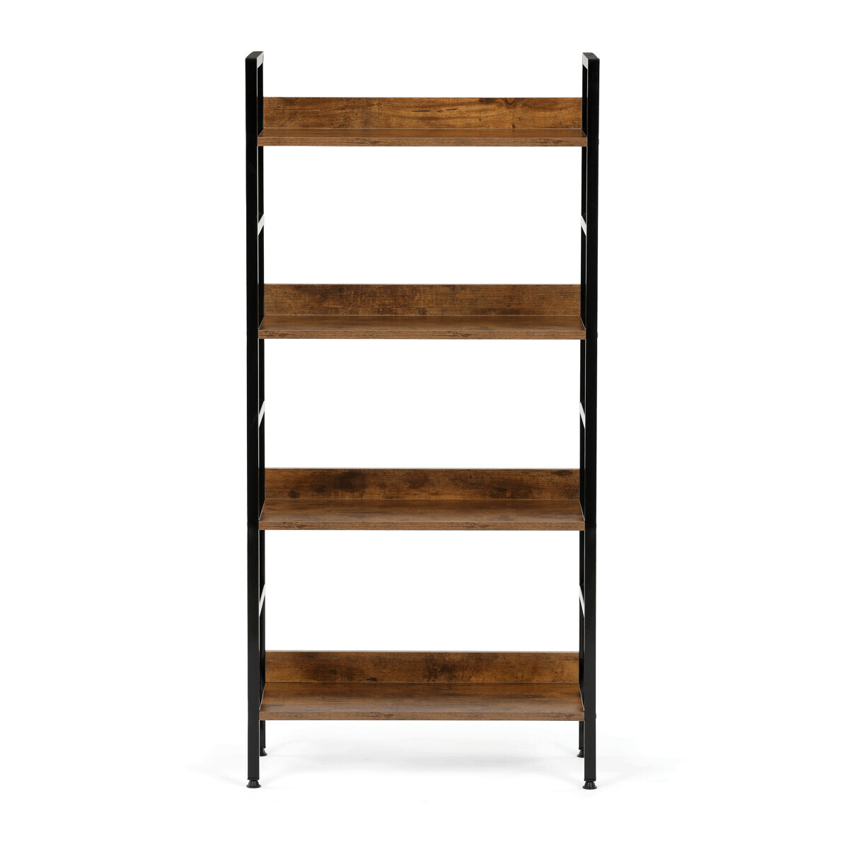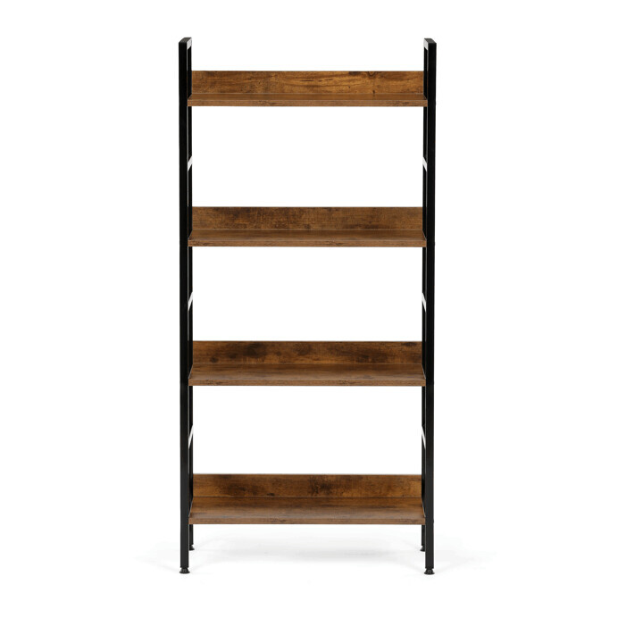 Regál s čtyřmi policemi nabízí dostatek odkládacího prostoru pro knihy, dekorace i další předměty. Police jsou vyrobeny z MDF s dekorem starého dřeva v hnědém odstínu, který dodává nábytku rustikální charakter. Stabilní kovový rám s černým lakem zajišťuje pevnost a dlouhou životnost regálu. Otevřená konstrukce umožňuje snadný přístup a zároveň působí vzdušně v interiéru. Regál je vhodný do obývacího pokoje, pracovny nebo kanceláře.