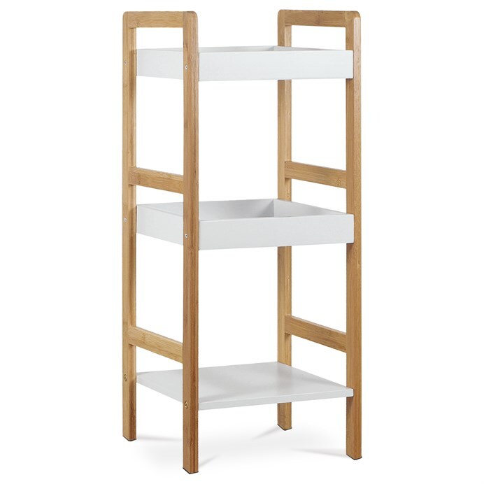 Regál s třemi policemi kombinuje pevnost masivního bambusu s bílým matným lakem MDF desek, což vytváří stabilní a zároveň esteticky příjemný kus nábytku. Bambusové bočnice v přírodním odstínu dodávají regálu přirozený vzhled a zajišťují pevnou oporu pro jednotlivé police. Dvě horní police jsou opatřeny zvýšenými okraji, které zabraňují sklouznutí uložených předmětů, zatímco spodní police je plochá a nabízí další úložný prostor. Díky nosnosti 9 kg na polici je regál vhodný pro lehčí dekorace, knihy či drobné předměty v interiéru. Kompaktní rozměry a jednoduchý design umožňují snadné umístění do různých prostorů, kde oceníte kombinaci funkčnosti a přírodního stylu.