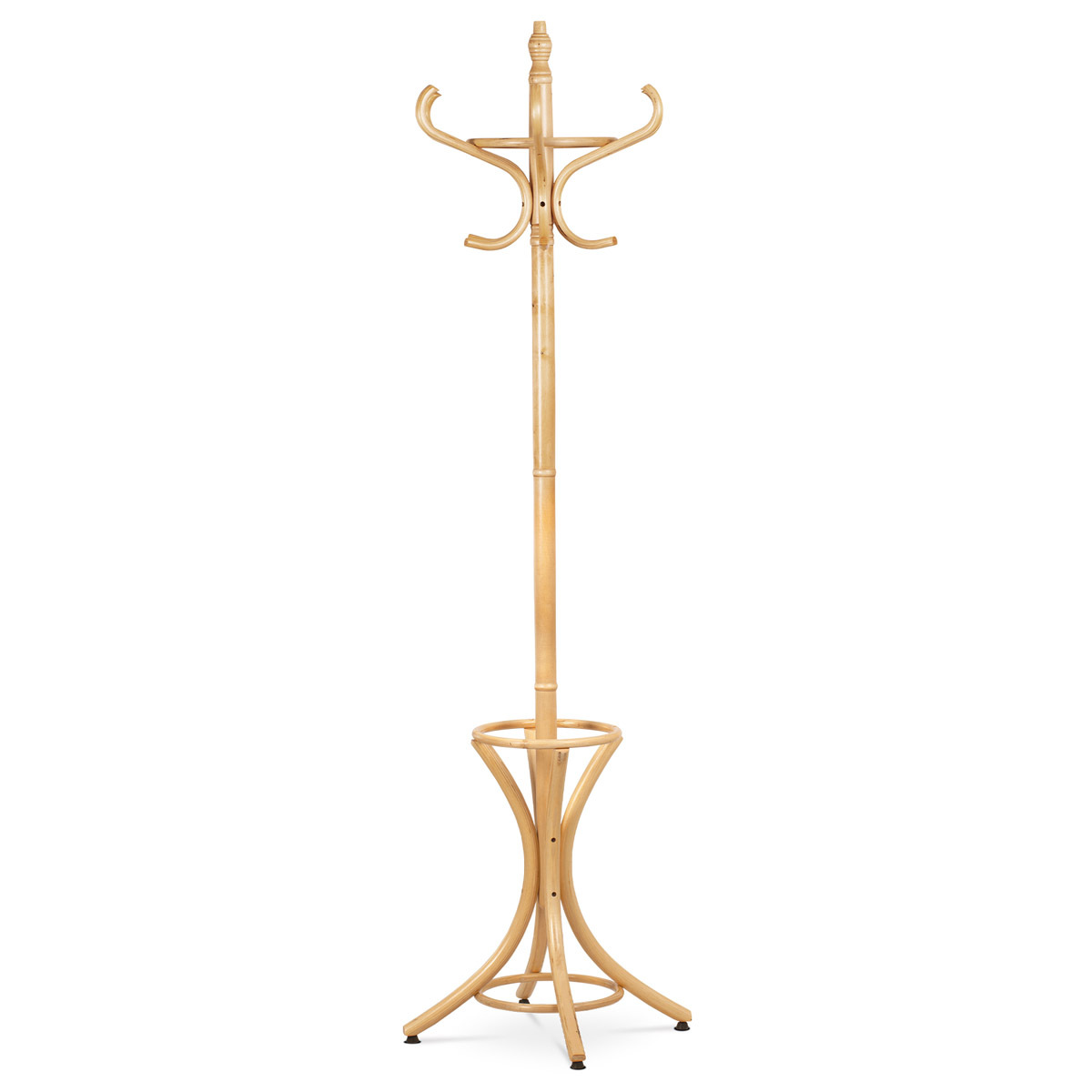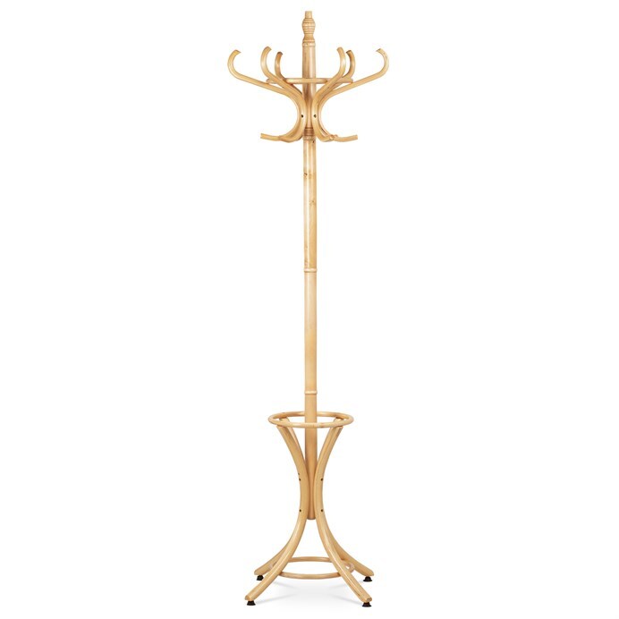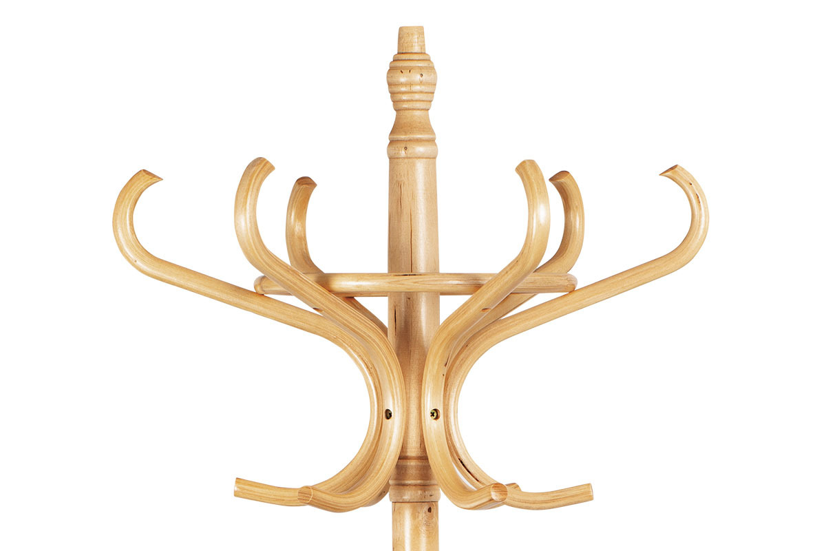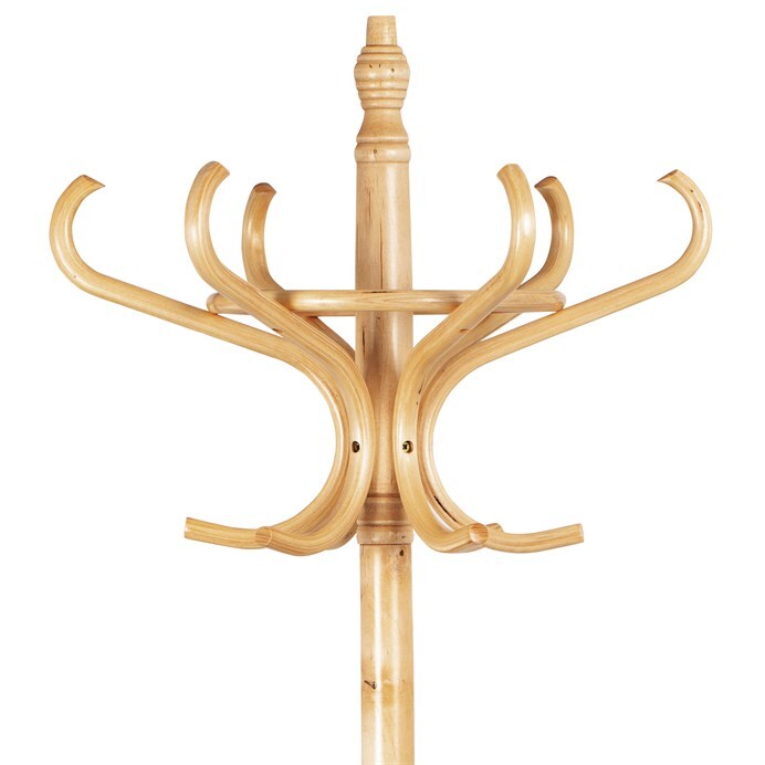 Stojanový věšák z masivu kombinuje pevnost topolu a břízy v přírodním odstínu, který podtrhuje přirozenou kresbu dřeva. Jeho stabilní základna s mírně prohnutými nohami zajišťuje pevné postavení i při plném zatížení. Horní část nabízí osm elegantně zakřivených háčků pro zavěšení kabátů, klobouků či šál, přičemž design vychází z klasických tvarů s moderním nádechem. Výška 185 cm umožňuje pohodlné využití v předsíních, kancelářích či čekárnách. Díky kvalitnímu zpracování a přírodnímu provedení je věšák vhodný do různých interiérů, kde oceníte jeho funkčnost i estetiku.