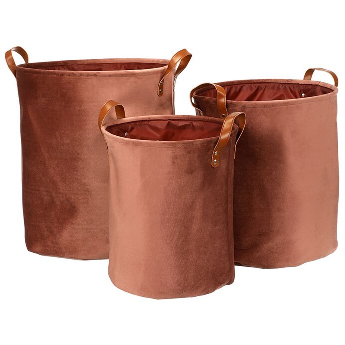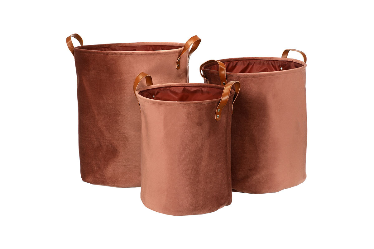 Tři látkové košíky, jsou lehké, praktické a skladné. Košíky budou šikovným pomocníkem pro ukládání všeho tolik potřebného i tolik nepotřebného.