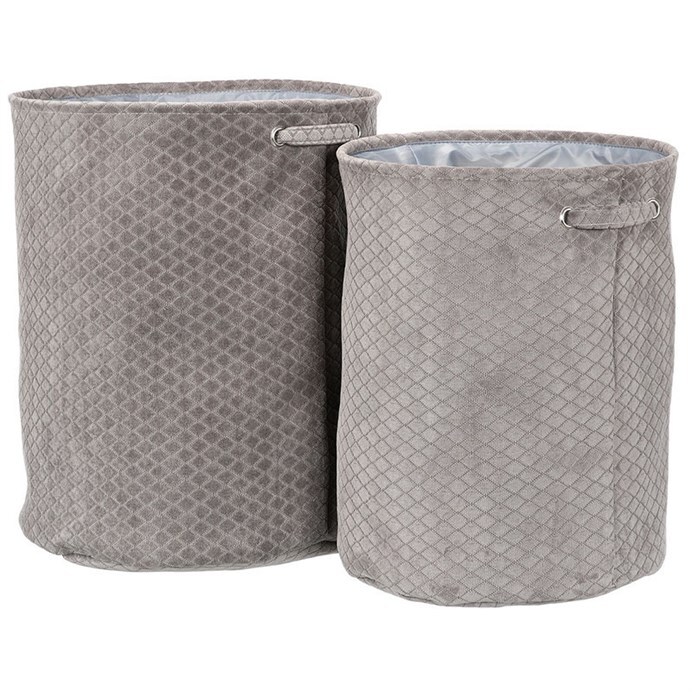 Dva látkové košíky, jsou lehké, praktické a skladné. Košíky budou šikovným pomocníkem pro ukládání všeho tolik potřebného i tolik nepotřebného.