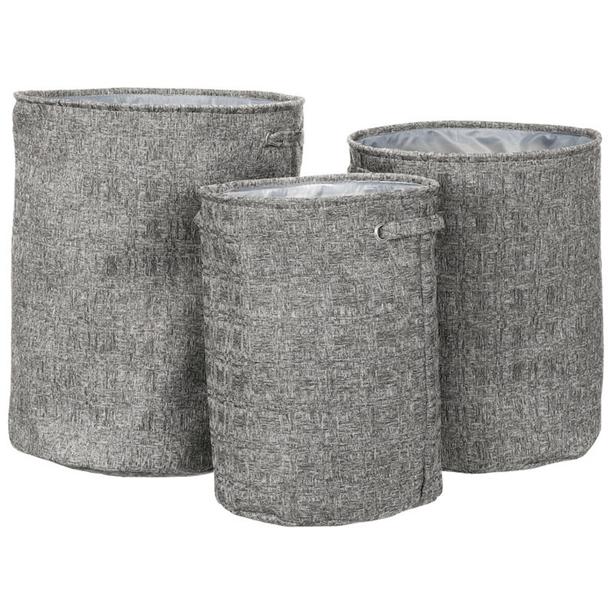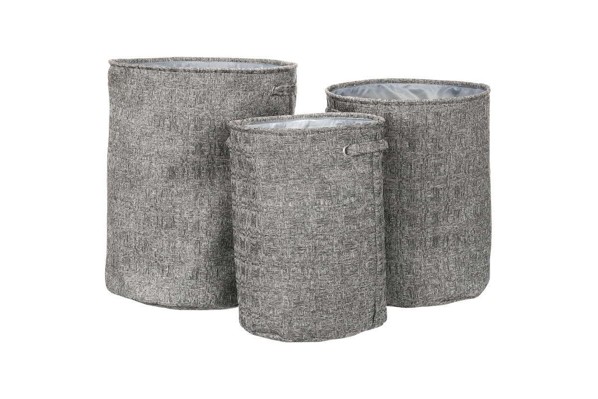 Tři látkové košíky, jsou lehké, praktické a skladné. Košíky budou šikovným pomocníkem pro ukládání všeho tolik potřebného i tolik nepotřebného.