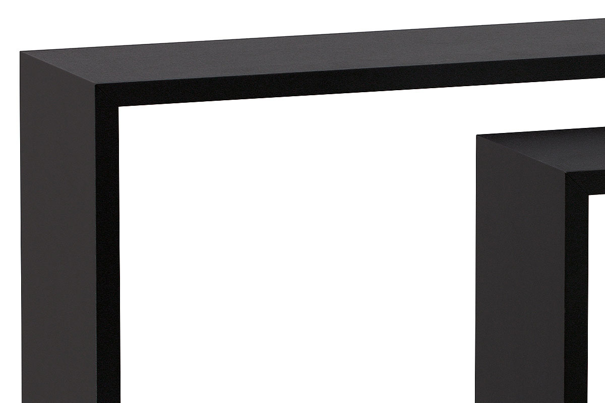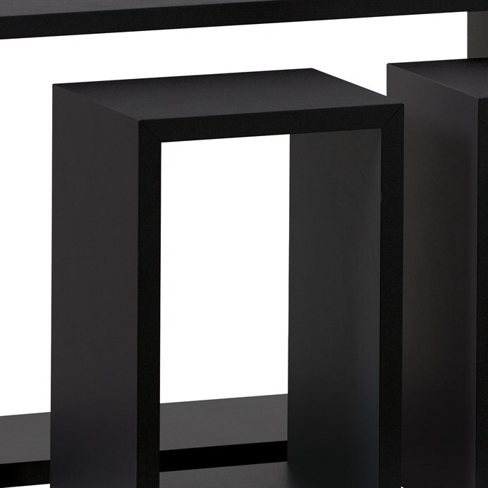 Sada tří nástěnných polic v černém matném provedení je vyrobena z MDF materiálu, který zajišťuje pevnost a stabilitu. Jednoduchý a čistý design polic umožňuje jejich univerzální využití v různých typech interiérů, ať už jako praktický úložný prostor nebo dekorativní prvek. Police mají otevřený tvar obdélníkových rámů, což usnadňuje přístup k uloženým předmětům a zároveň vytváří vzdušný dojem. Díky různým rozměrům jednotlivých kusů lze sestavit zajímavé kompozice na stěně. Balení obsahuje ochrannou fólii pro bezpečnou manipulaci a přepravu.