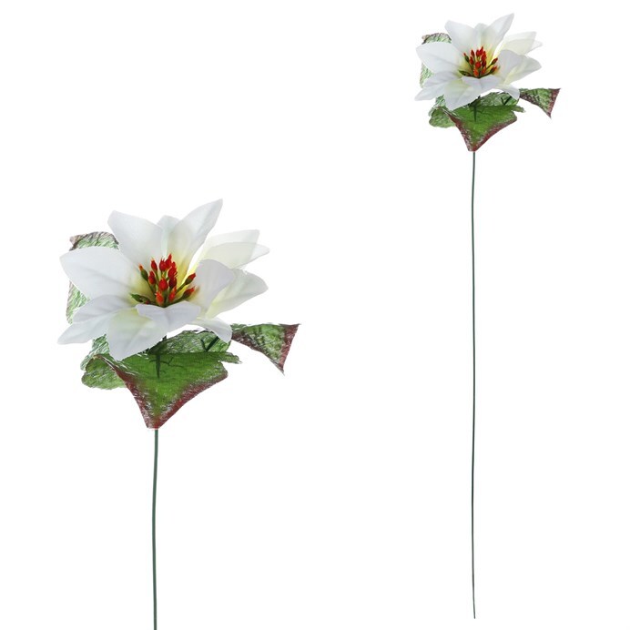 Rádi byste osvěžili vaši vánoční výzdobu novou květinovou dekorací, která vypadá působivě, dlouho vydrží a zároveň je svým barevným pojetím vhodná pro takové období? Elegantním řešením bude právě bílá jednohlavá vánoční růže, která obohatí sváteční interiér svým originálním provedením a dekorem. Je skvělé, že tato nádherná umělá rostlina nikdy neuvadne a může přinášet potěšení svým půvabem ve stejné intenzitě každý rok. Nechte ji vyniknout třeba v krásné váze na svátečně prostřeném stole, či jiném viditelném místě, kde bude vynikat a dělat radost vám i vašim návštěvníkům. Naše nabídka zahrnuje mnoho dalších umělých květin v závislosti na druhu a barvě, což umožňuje nepřeberné množství variant pro aranžování, a tudíž je jen na fantazii a vkusu každého z nás jaké si vybere.