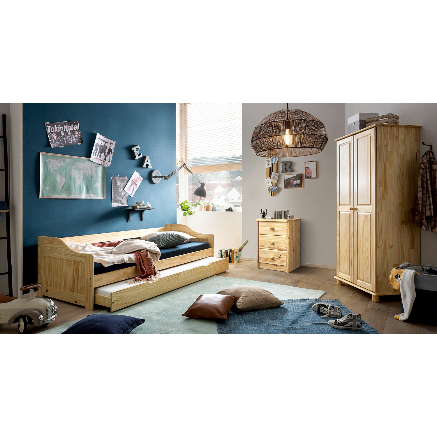 materiál masiv borovice, lakované provedení šatní skříň vybavená šatní tyčí a policí doporučený nástavec 8861