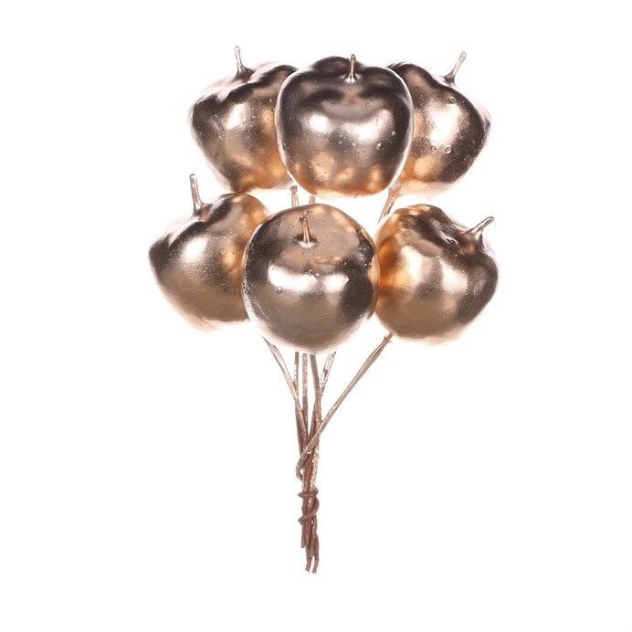 Drobné dekorační přízdoby v podobě mini jablíček na drátku v šampaňské barvě jsou univerzálními doplňky vhodnými pro celoroční zdobení. Mají široké uplatnění a je pouze a jen na vašich nápadech a fantazii, do jakých dekoračních projektů je zařadíte. Můžou být použity na výzdobu interiéru pro své potěšení, nebo být součástí aranží pro oslavy a další společenské události. Tyto drobnosti jsou ideální pro ty z vás, kteří si rádi zdobí svůj prostor dekoracemi vyladěnými do nejmenších detailů.