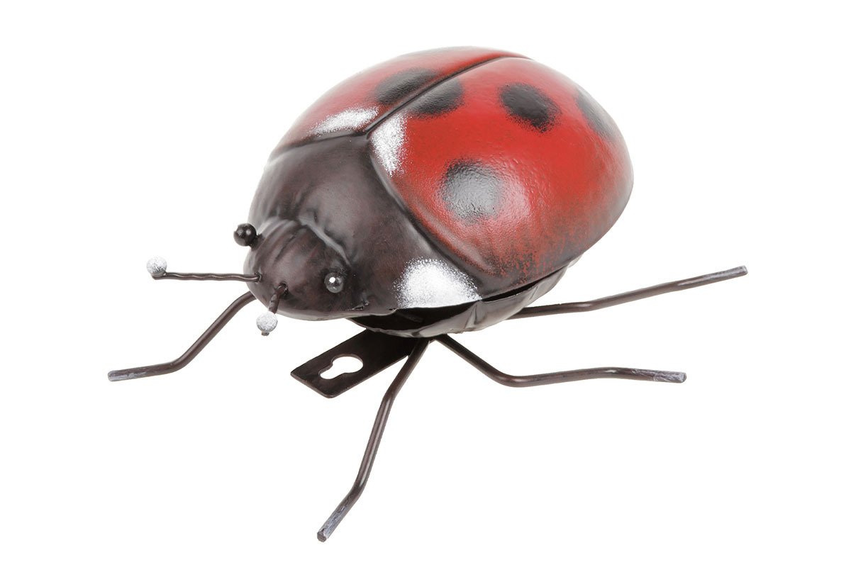 Tato kovová nástěnná dekorace v podobě berušky s krásně červenými krovky je malým uměleckým ozdobným předmětem, který dovede zaujmout. Díky chytře umístěnému háčku na pověšení, bude na zdi vypadat, jako by se po ní plazila. Celá dekorace je vyrobena z kovu, což znamená, že ji můžete pověsit i do venkovních prostor. Zdobit může stěnu pergoly, altánku, venkovní zdi domu a dalších podobných míst, kam je dobře vidět. Tato netradiční a nevšední hmyzí ozdoba dodá prostoru jedinečný vzhled.