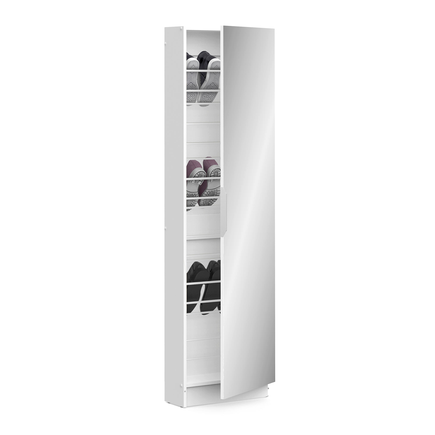 barevné provedení matná bílá na dveřích zrcadlo 50 × 173 cm, kovová úchytka montáž možná na levou i pravou stranu 6 úrovní pro 12 párů bot