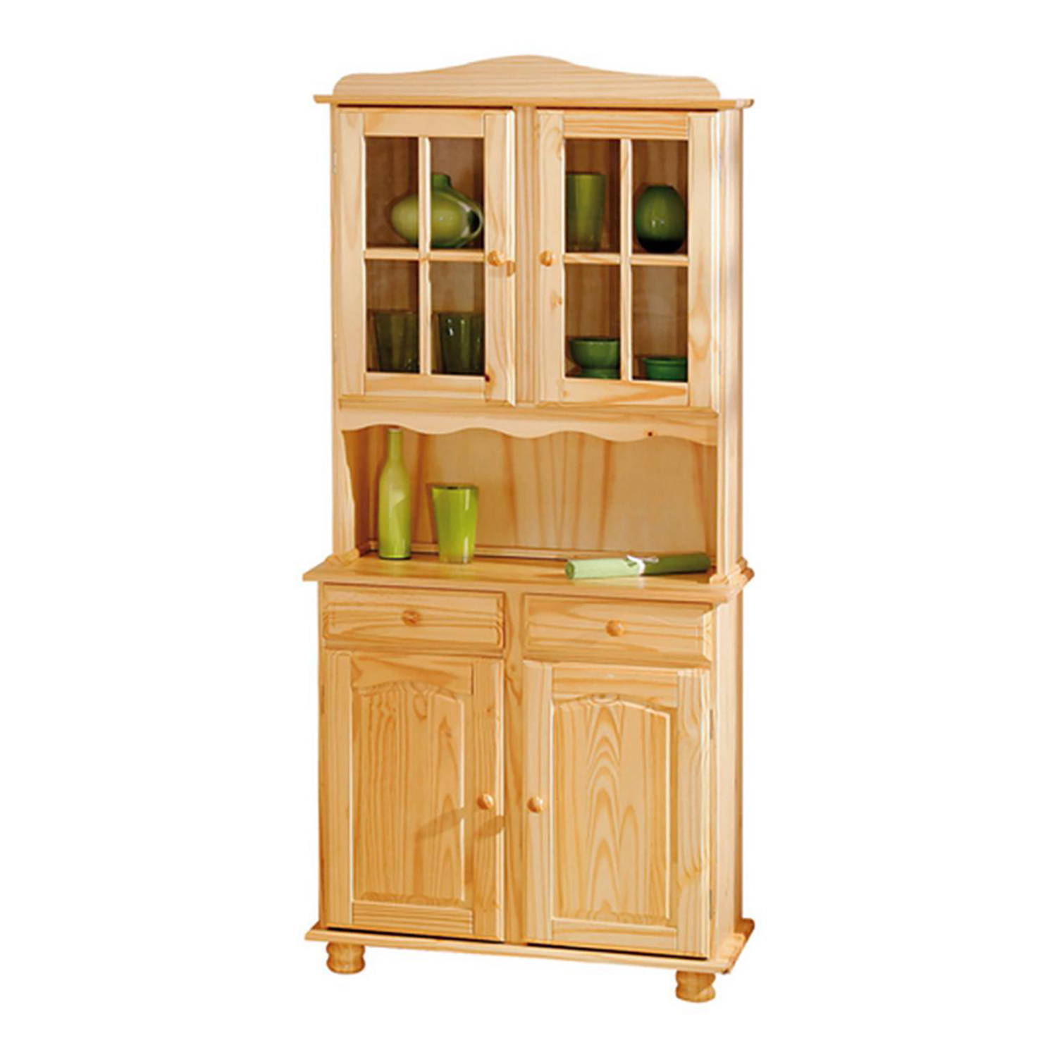 materiál masiv borovice, lakované provedení v horní části 2 prosklená dvířka ve spodní části 2 plná dvířka, 2 zásuvky s kovovými pojezdy hloubka horní části 32 cm sestava příborníku PAMINA ID30500000 a naástavce PAMINA 8056 PAMINA, LOVI, ABACO, LIVIO, ALICANTE, VALENCIA, TOSCANA, SIENA