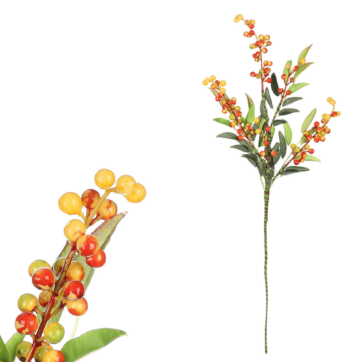 Umělá větvička jeřabiny s oranžově zbarvenými bobulemi je skvělým způsobem, jak přidat přírodní nádech a příjemné odstíny do vašich vlastnoručních dekorací. Je sice umělá, ale vypadá jako živá. Představuje tuto rostlinu s nádherně zbarvenými bobulemi, což jí přidává na estetické hodnotě. Tato větvička jeřabiny je vhodná pro různé typy aranží po celý rok, ale nejlépe se hodí do podzimního období, pro které je tak typická. S touto umělou přízdobou můžete snadno přinést do vybraného prostoru nikdy nekončící krásu přírody bez nutnosti o ní nijak zvlášť pečovat.