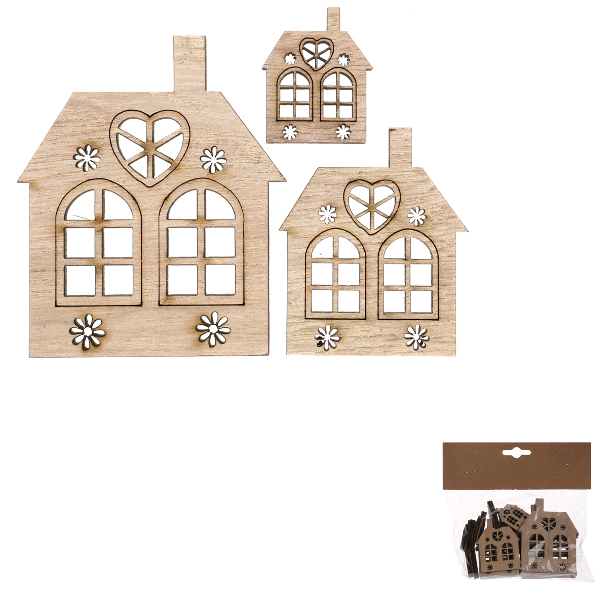 Sada drobných vánočních přízdob v podobě dobových domečků je klíčem k tvořivosti a docílení jedinečné vánoční výzdoby s vlastním rukopisem. Tyto lehké a malé předměty vyrobené z dřeva, nabízejí nekonečné možnosti pro zdobení. Buďte mistrem své vlastní vánoční výzdoby a dovolte své fantazii volný průchod. Každý dílek z této sady je jako malý kus přírody, který můžete umístit kamkoliv a přilepit nebo aranžovat podle vaší představy. Kombinace přírodního materiálu a elegantního tvaru těchto ozdob je receptem na osvěžení vaší vánoční výzdoby. Ať už jste zastáncem minimalistického designu nebo jemných barev, tento set vám poskytne nekonečný zdroj inspirace pro vytvoření svého vlastního svátečního ráje.