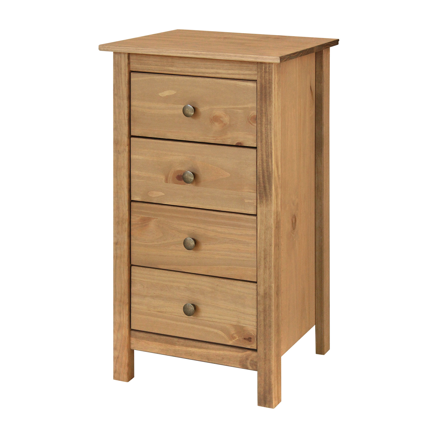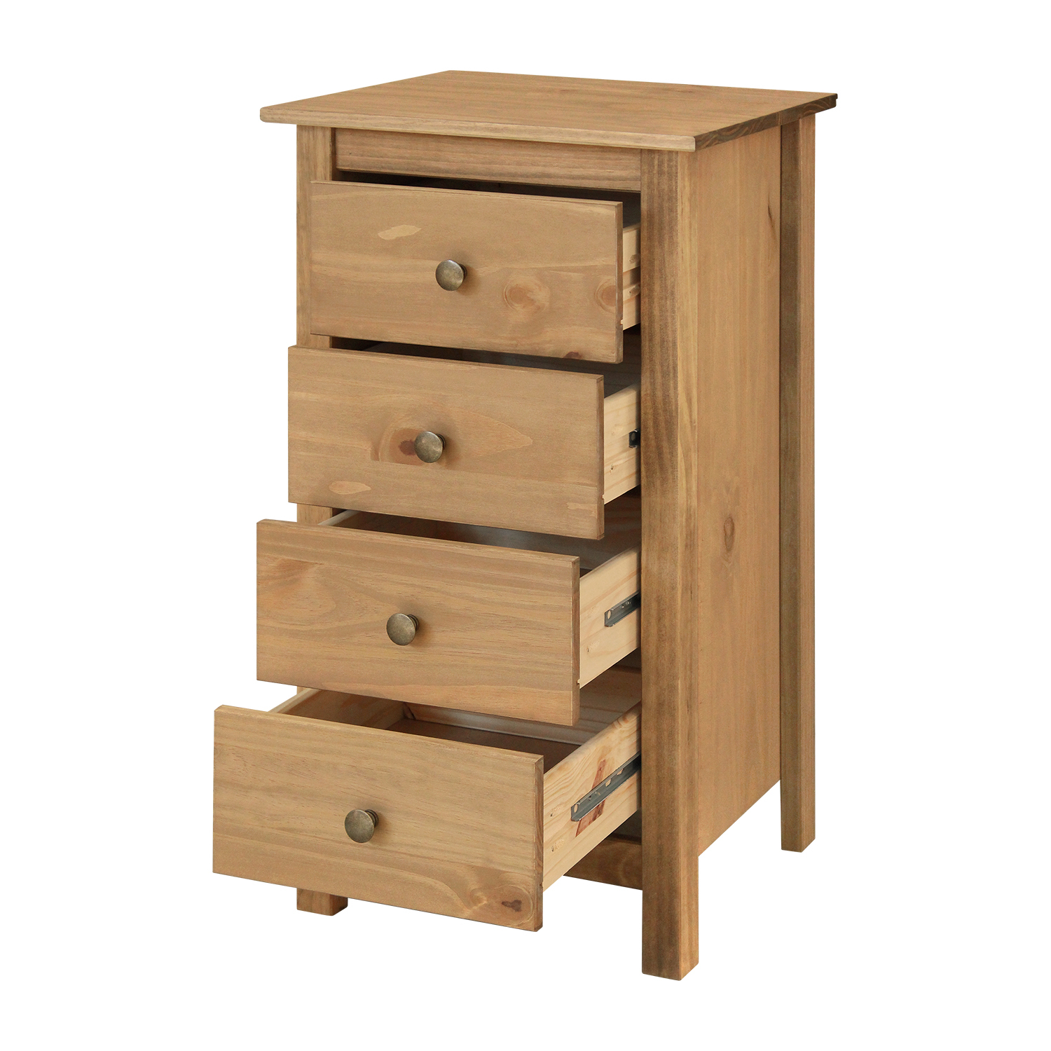 materiál masiv borovice voskovaná v medovém odstínu kovové úchytky v barevném provedení černěná mosaz 4 zásuvky s kovovými pojezdy