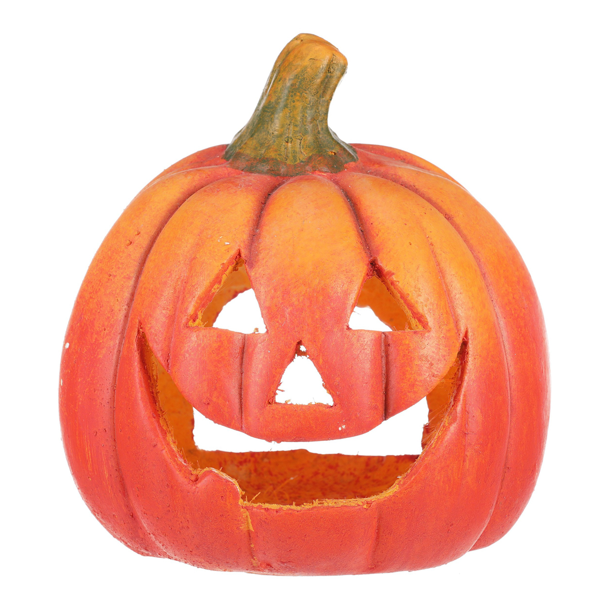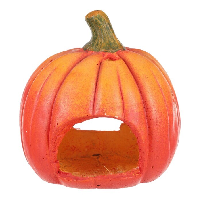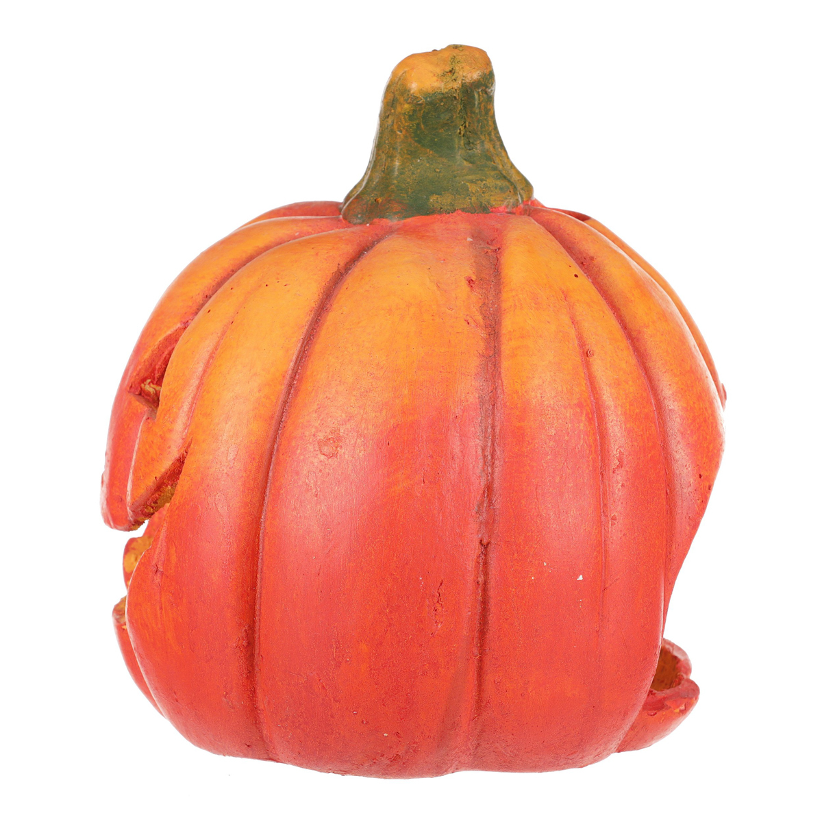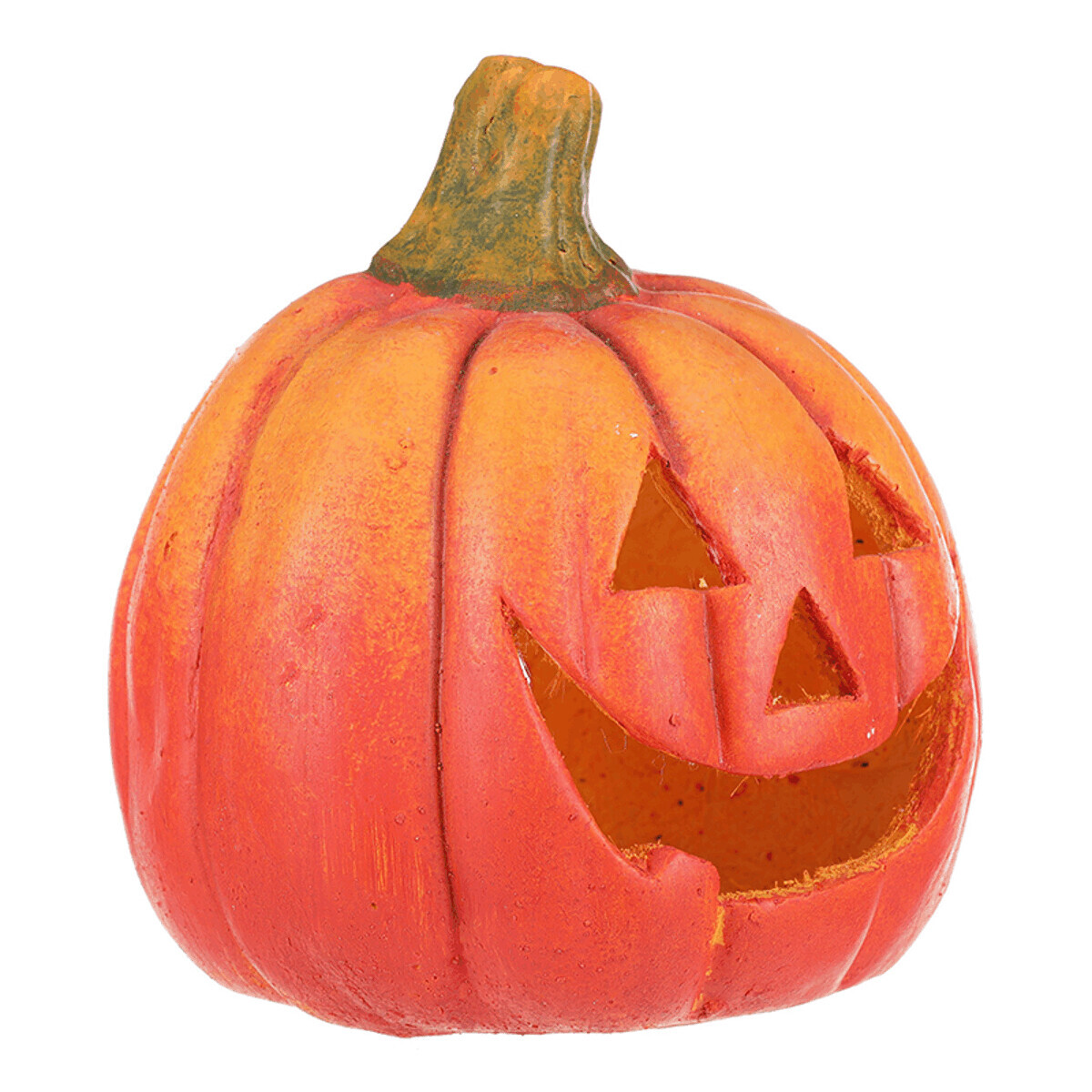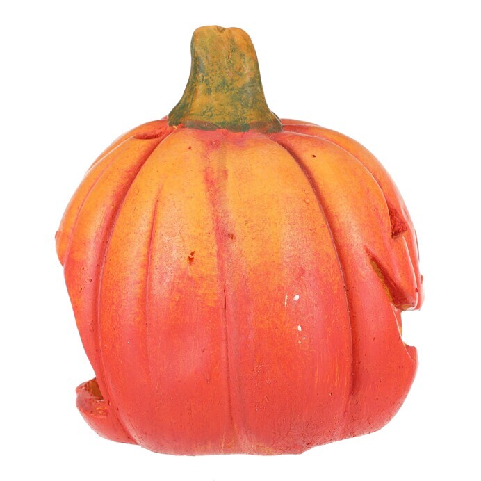 Keramická dýně ve výrazných oranžovo-červených odstínech slouží jako dekorativní svícen s vyřezávanými otvory ve tvaru obličeje. Její povrch má jemnou texturu terakoty, která dodává autentický vzhled a příjemný vizuální efekt. Díky otvorům je vhodná pro umístění svíčky, která vytváří teplé a atmosférické osvětlení. Dýně je stabilní a díky keramickému materiálu snadno udržovatelná, ideální pro podzimní a halloween dekorace.